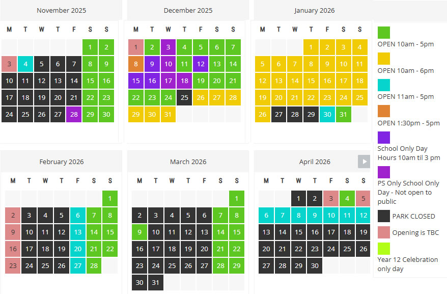 Funfields is open selected weekdays, weekends public and school holiday's.